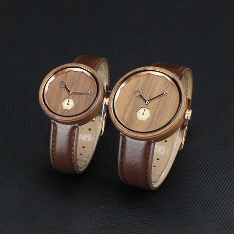 ساعة خشبية بتصميم خاص مع شعار منقوش على ظهر الكرز من أجل الرجال والنساء